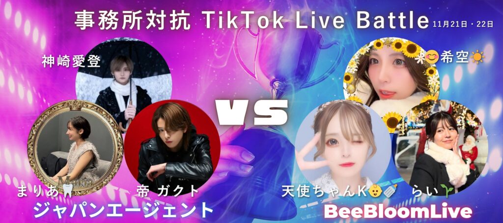BeeBloomLive vs ジャパンエージェント 3対3 TikTokライブバトル。